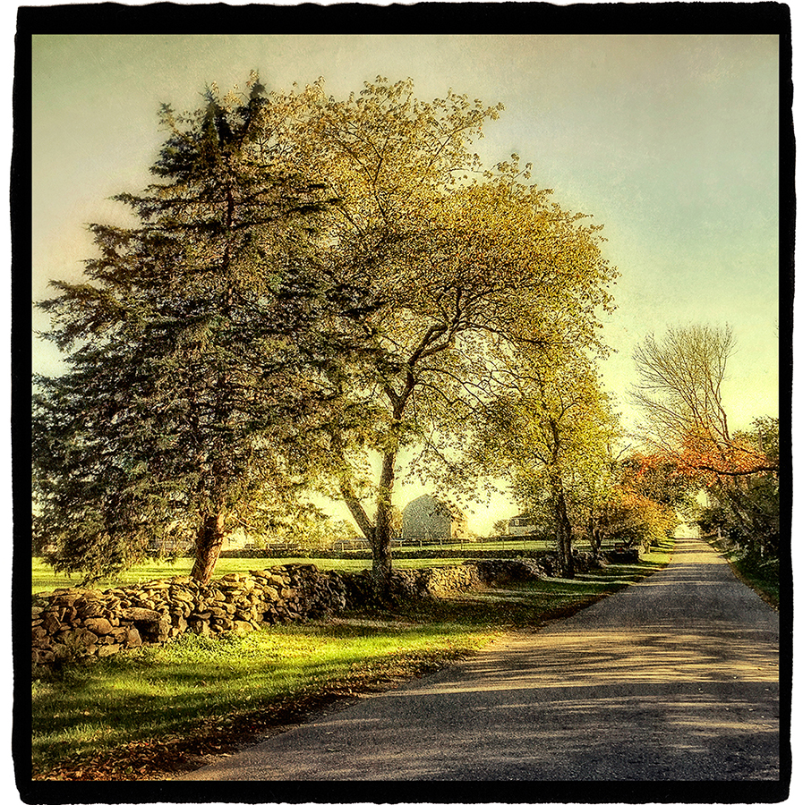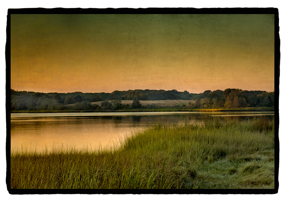 Gifford, Bierstsadt, and the Luminist and Hudson River School painters of that era conveyed the sublime quality of light with glazing, varnishing and fiercely guarded secret recipes. In Close to Home, I create a sense of atmosphere by applying age-old hand gilding techniques, wax and varnish to digitally created photographs printed on translucent vellum. The slow and exacting process gives me a sense of kinship with the artistry and craftsmanship of those who have come before me.