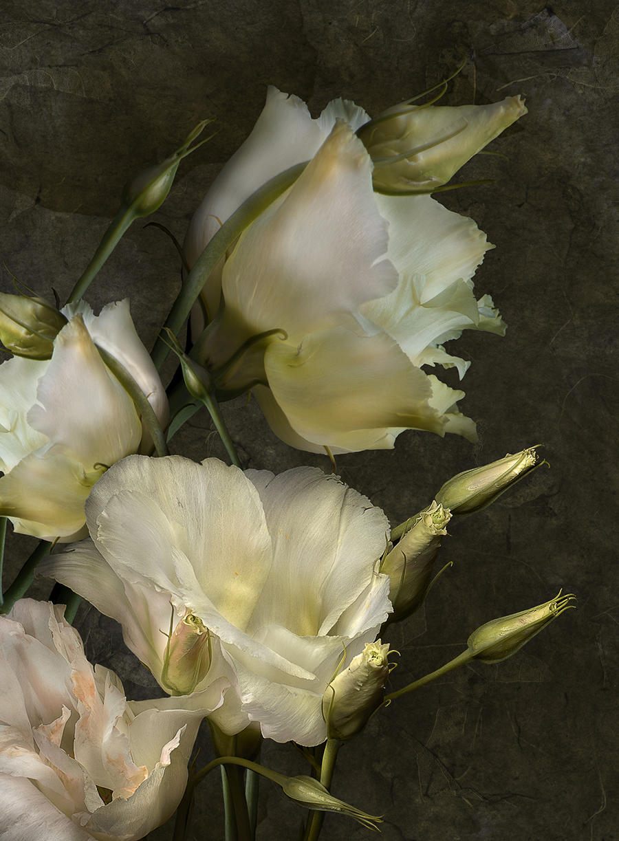 We all have personal narratives, a collection of stories illuminating key moments in our lives. Our stories come from memories, truths, embellishments, and omissions. Using light rather than words, I have written imagined narratives about flowers from my garden. Studying that transformation from buds on the edge of an explosion to tissue-thin fibers holding the faded hues of past beauty is a meditation on life. It is a reminder to live fully in each moment.
