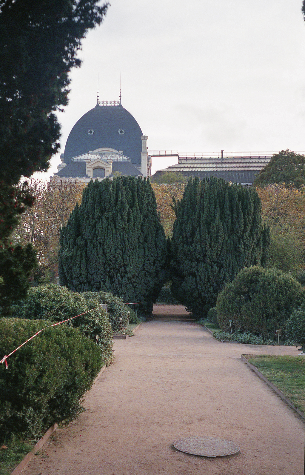 A lot of Coumans’ work tries to capture both of these intrinsic patterns in life. THIS IS A GOOD KISSING SPOT shows us a pretty, but also off-putting scene. The two bushes in the center of the shot seem to perfectly kiss in the middle, but their tops are cumbersomely truncated so that they align with the tree line behind them. Their strange shape also mimics the domed roof in the background. The foliage is green and plentiful, but this manicured garden feels anemic. The rope on the left blocks a deviating path, forcing eyes to where those bushes meet––evoking gangly teens instead of enchanted lovers. The spot is awkward, instead of idyllic. To top it all off, the title communicates a desire to the viewer––but screams the suggestion when it should have been whispered. We can feel that an excessive amount of control has strangled any feeling of romance in this scene. The patterns here resemble a forced dance towards the world we want but can’t have.