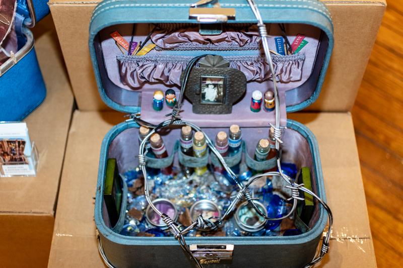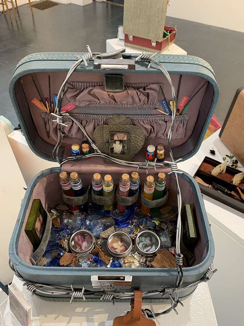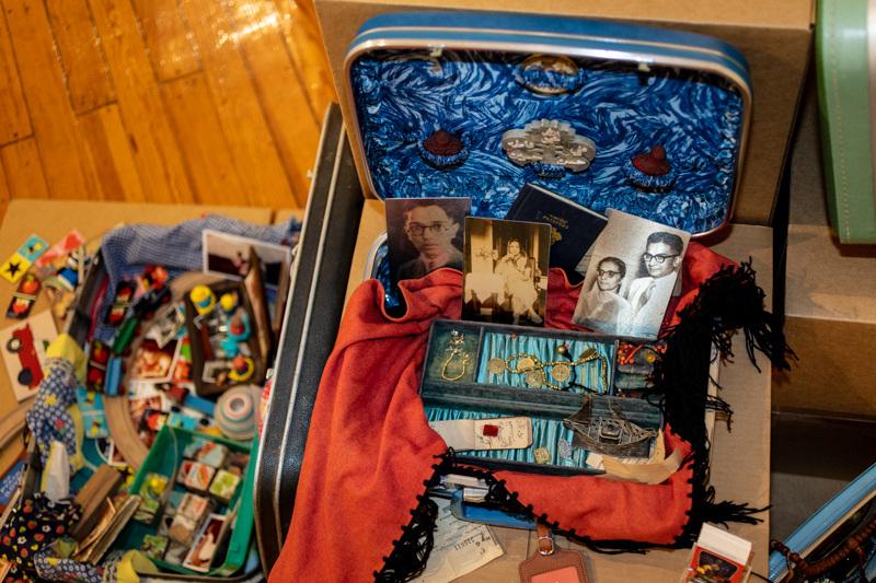 As an artist/storyteller/voyeur trapped and existing between two cultures, Nilou has embraced the complex dual existence that arises from displacement and dislocation from one’s sense of home – and the desire to revisit that which was once familiar and is now lost. In this suitcase series, Moochhala uses old family photos, documents and memorabilia that reflect the journeys and paths taken – in real or imagined realms – by various family members.