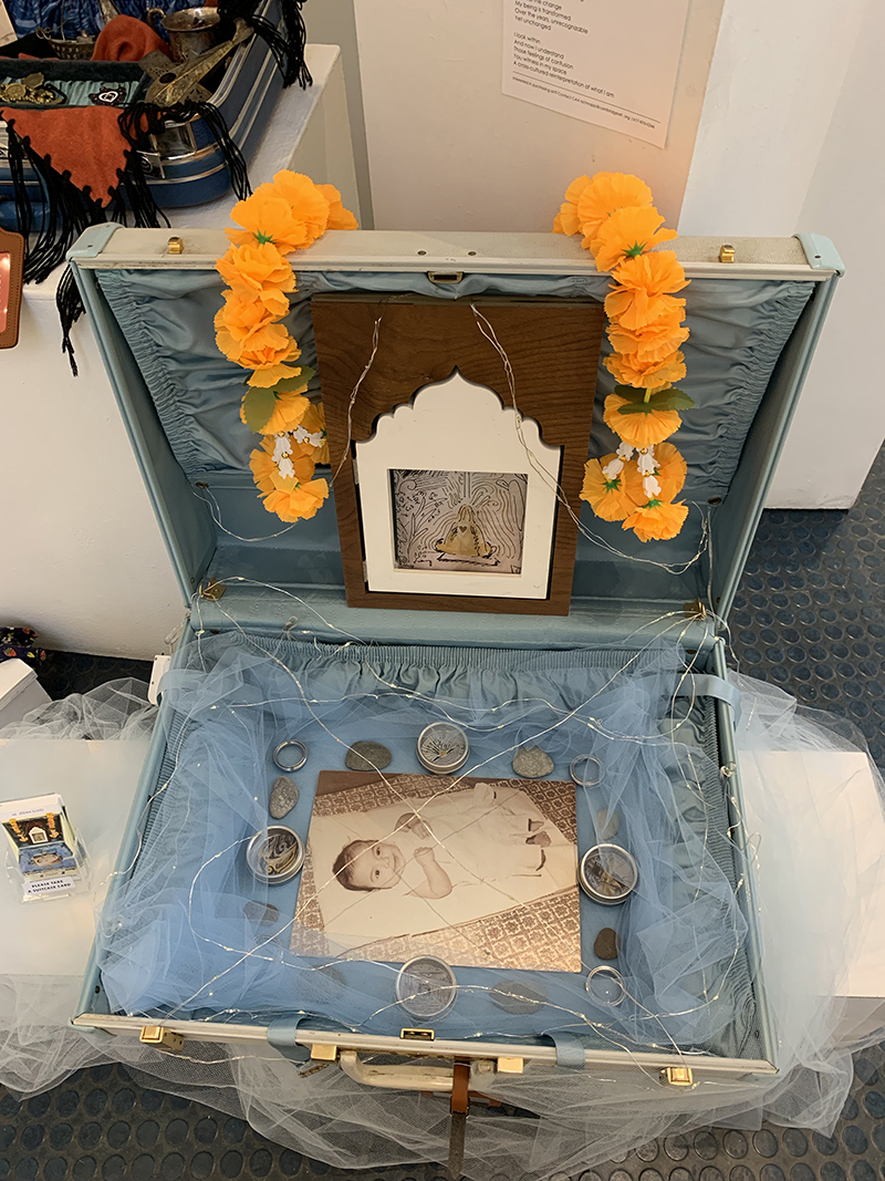 Nilou Moochhala’s visual practice (art & design) has been channeled into examining issues of cross-cultural change and transformation through collaging and assemblage techniques. Originally from Mumbai, she has been inspired to juxtapose found objects, memorabilia, and use of language to create social and political narratives, be it in public street spaces or private art galleries.