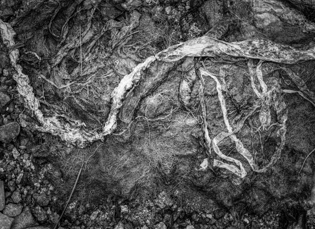These four images are examples of what and how I see landscapes as influenced by his teachings. “Mesa Tectonic” was made shortly after completing his Santa Fe Workshop class titled Black and White Master Print.I was especially mindful of his techniques of enhancing details. “Connections” is part of a series of what he called “Infinity Landscapes,”landscapes that lack perceived depth.“Cottonwood Arches” is part of a series of about the Rio Grande Bosque, which I began under his tutelage. “Leaf Ring,” also from the Bosque series, explores the mysteries of the Bosque landscapes.